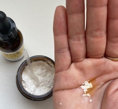 片方は液体、もう片方はパウダーなので手のひらで混ぜてからつけています